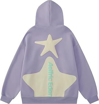 Features a striking purple and star print that adds an edgy, trendy touch to your casual wardrobe, perfect for making a statement