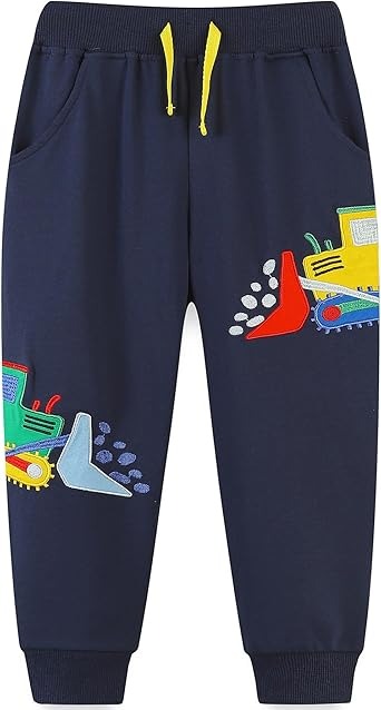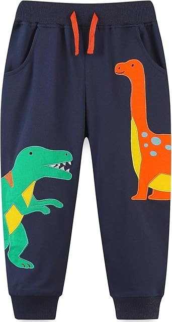 Featuring adorable embroidered designs of dinosaurs, rockets, and excavators, these pants are perfect for little boys who love adventurous themes