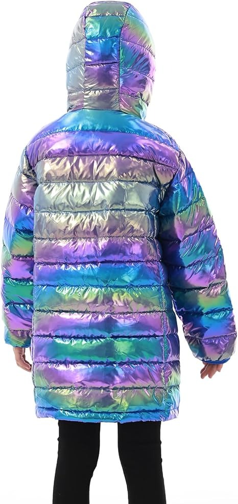 Metallic fabric that makes kids sparkle even on dreary winter days.The girls winter coat might have some tiny wrinkles from the vacuum packaging. A quick wash or iron will have it looking perfect again