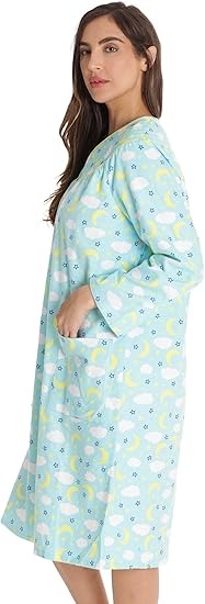 Dreamcrest Women’s Snap-Front House Coat Flannel Duster Robe with Pockets