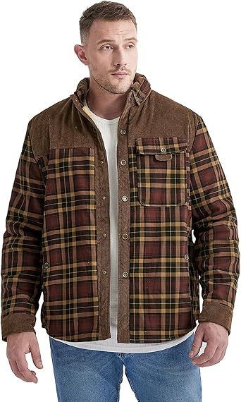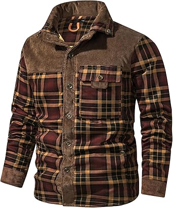 The shell fabric is classic vintage flannel plaid and superior corduroy patchwork, the overall color is vibrant, the lining is warm and soft sherpa fleece, the men's winter jacket is a western cut style, perfect for fall and winter indoor as well as outdoor activities