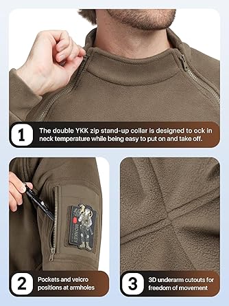 Sherpa lined tactical sweatshirts is made of double-layer composite shaggy fleece, the outer layer is fleece with good windproof performance, the inner layer is delicate and soft short hair sherpa fleece. Fleece jacket has excellent warmth and breathability, suitable for cold season such as fall and winter. The fabric of Mens fleece lined jacket is specially treated with anti-static and anti-pilling function.