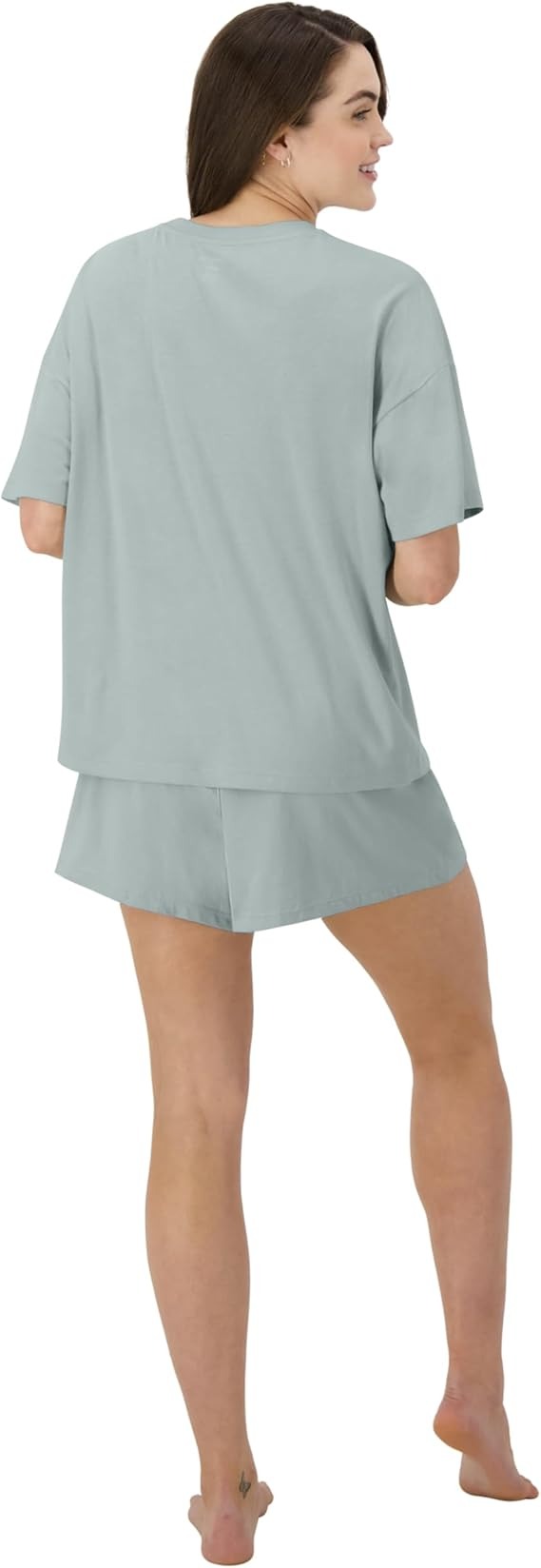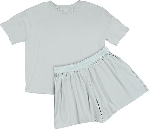 Boxy tee features a classic crew neckline, while the sleep shorts offer a luxe, tonal Hanes soft-stretch elastic waistband - allowing you to move with ease