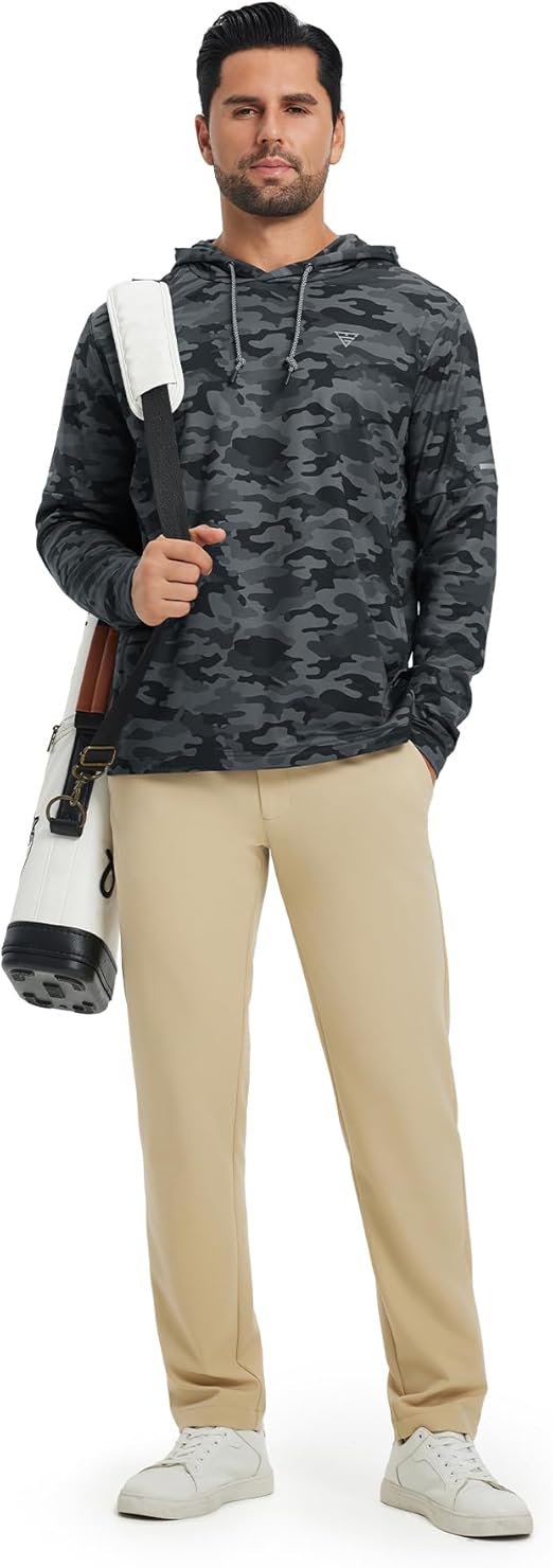 This mens hoodie is made of polyester fleece-lined fabric for extra comfort, which is Lightweight, easy care, UPF+, soft hand feeling, breathable and stretch with quick-dry properties that keep you warm and comfortable on and off the course.
