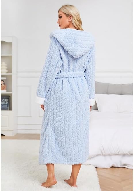our Long Hooded Robe for Women crafted from premium jacquard lambswool fabric that ensures a soft touch. Whether you're lounging at home or vacationing, this plush robe guarantees unparalleled warmth and coziness. Embrace relaxation in style and elegance.