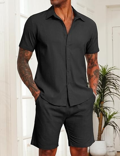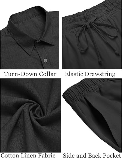 Elevate your summer wardrobe with our exclusive cotton linen blend fabric of COOFANDY two piece summer sets; Crafted for comfort and style, fashion linen short sets for men are lightweight, breathable, stretchy, wrinkle-free, non-fading, moisture wicking, no ironing and soft – the ideal choice to keep you cool and fresh in hot weather