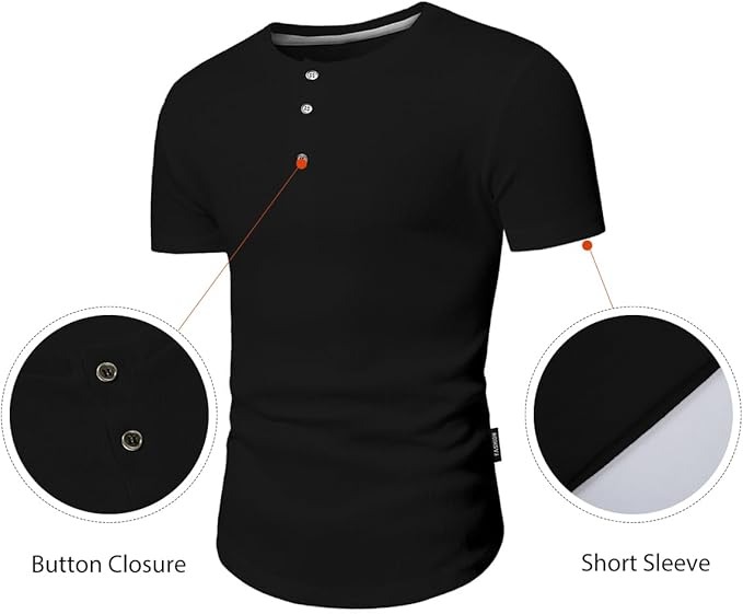 he JMIERR Men's Muscle Slim Fit Button Henley Shirts are designed to fit snugly against your body, accentuating your muscles and creating a sleek silhouette that's perfect for any occasion