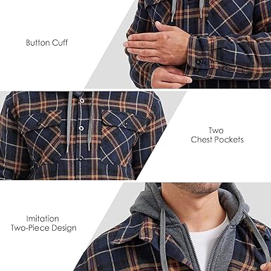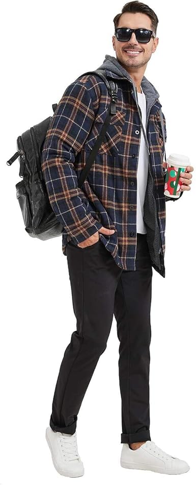 Men's Fleece Lined Flannel Shirt Jacket features a premium cotton and polyester blend thermal lining, premium material padded insulation to ensure you stay warm, making it be the one of the best choices for spring, fall and winter outfits.