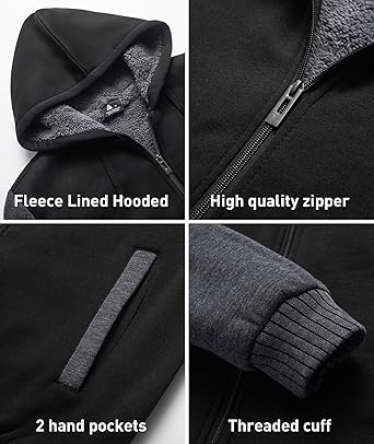 The men's zip up hoodie has two side pockets, which can provide enough safe space for your belongings. Men's sherpa lined hoodie is great for daily wear and various outdoor activities, such as lounging, streetwear, traveling, mountaineering, running, sports activities, and workouts, etc. The perfect gift for your boyfriend, son, husband and yourself
