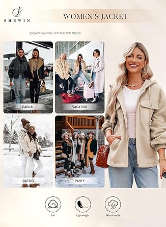 SHEWIN jackets for women 2025 the soft and breathable fabric ensures all-day comfort, while the trendy design makes it a must-have for your fall tops outfits