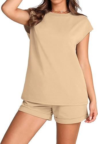This 2 piece sets features a basic casual shirt with cute cap sleeves, high waist short with side pockets and outfitted with both elastics allows it to provide the fit you need.Classic ribbed neckline adds texture.
