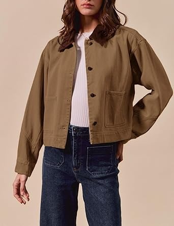 This vintage fall jacket is crafted from soft cotton material, durable, breathable, and mid-weight fabric, perfect for morning and breezy days