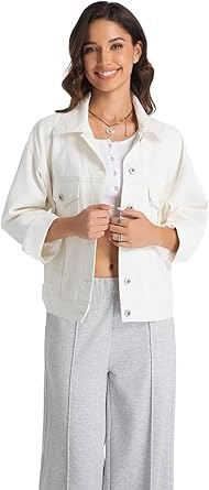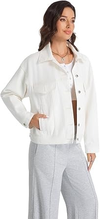 Women's Jean Jacket with Long sleeves, Point collar, Front button placket, Chest patch pockets with button-flap closures, Two side hand pockets