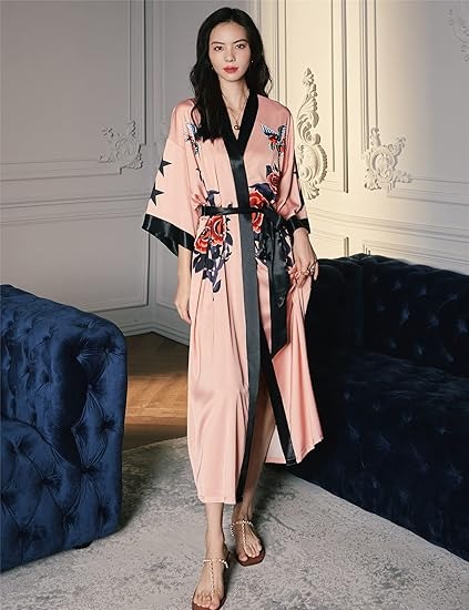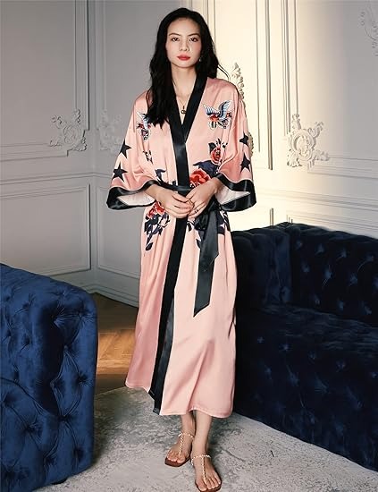 Wear this long satin robe to feel pampered or to lounge in style. Ideal for getting ready in, this comfortable and stylish long silky robe is bound to make you feel extra special