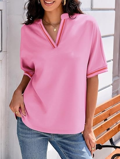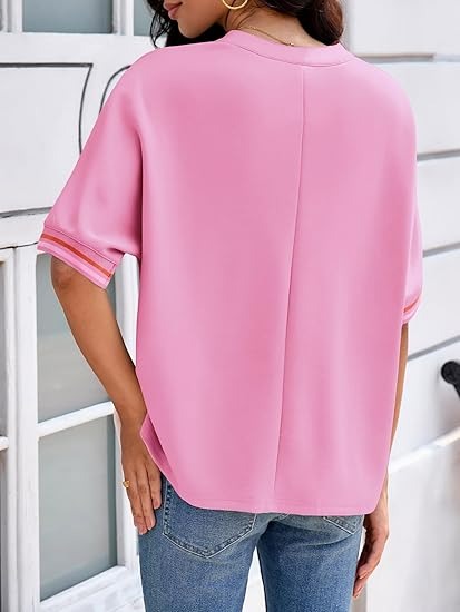 Featuring a classic V-neckline, color block design, half sleeve, this tunic top adds a touch of trendy flair