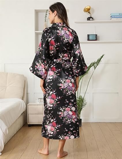 The satin kimono has different styles,either featuring beautiful florals or peacock with florals or gorgeous Japanese style figure. It is with hidden side pockets to hold little items,3/4 sleeves convenient to do errands around home or get dressed without the sleeves in your way