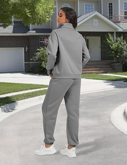Womens fleece sweatsuit 2 piece outfits, high quality soft fabric and thin brushed fleece lining, breathable, soft skin-friendly, comfortable and warm, relaxed fit